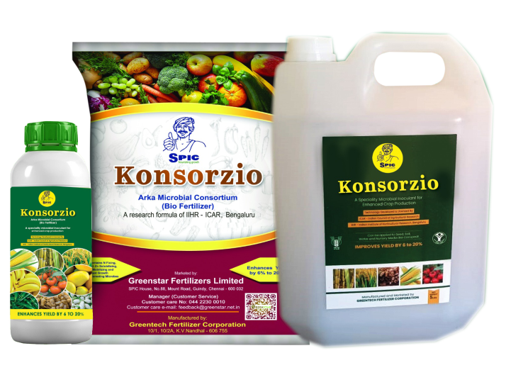 SPIC KONSORZIO is a carrier/ liquid consortium of beneficial microbes' viz., Azotobacter tropicalis, Bacillus aryabhattai and Pseudomonas taiwanensis. It contains N fixing, P & Zn solubilizing & K mobilizing plant growth promoting microbes. This technology was developed & Licensed by ICAR, IIHR – Indian Institute of Horticultural Research.